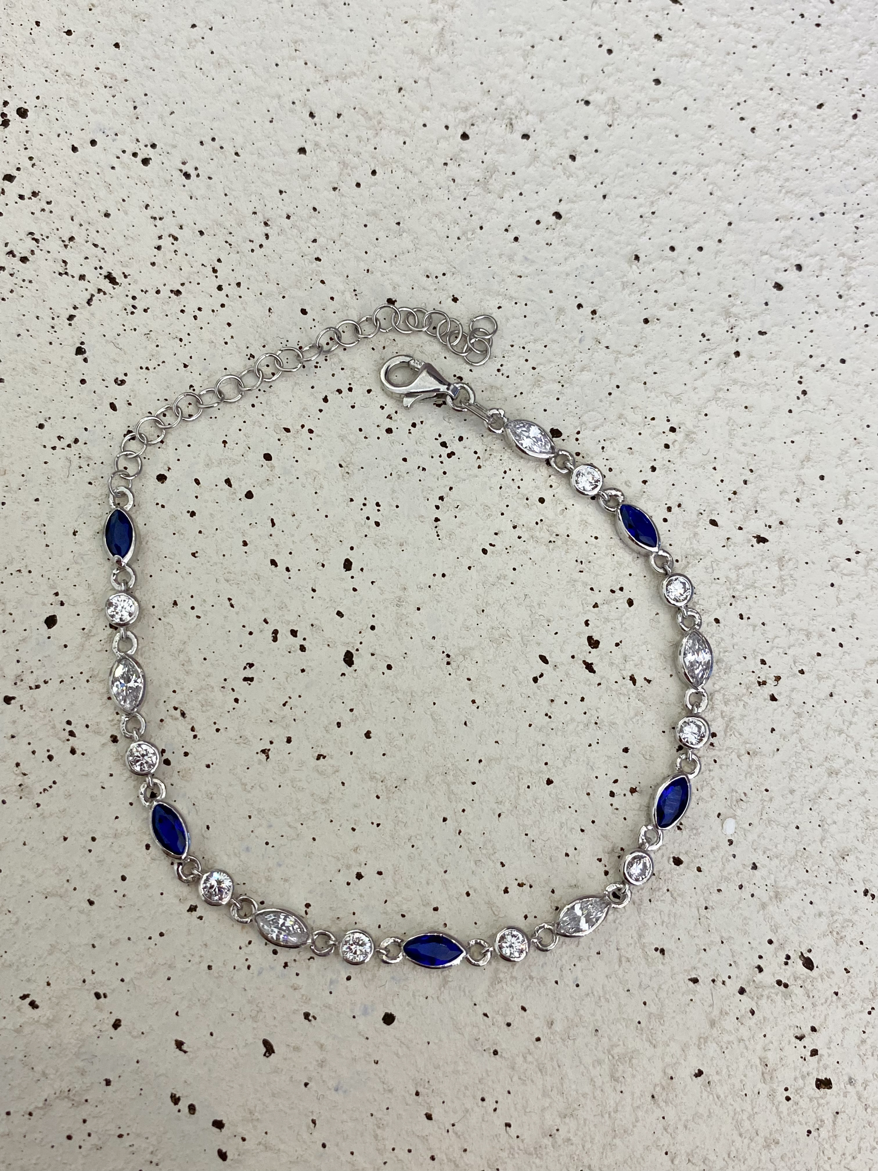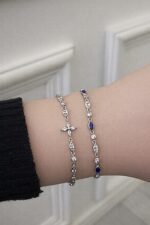 Sıralı Lacivert Taşlı Silver Bileklik