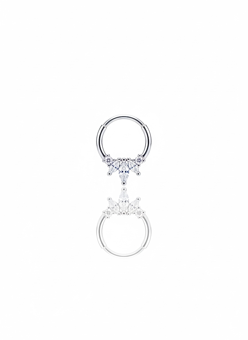 Lotus Model Damla Taşlı Halka Piercing | Silver