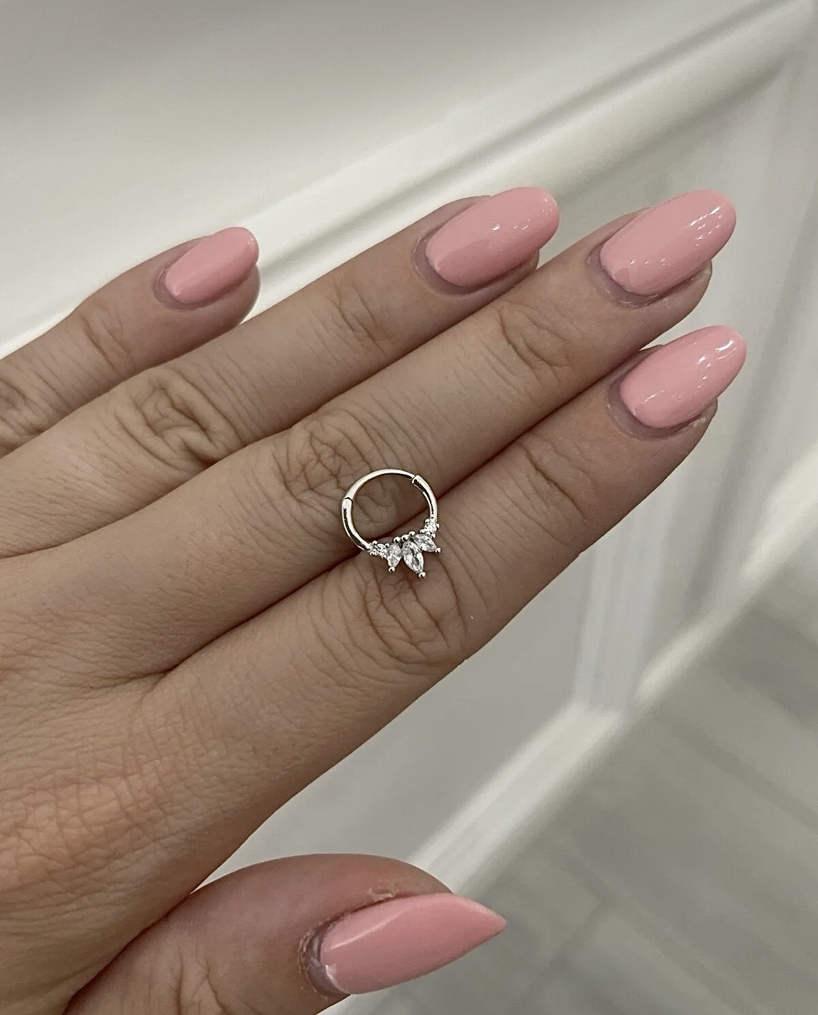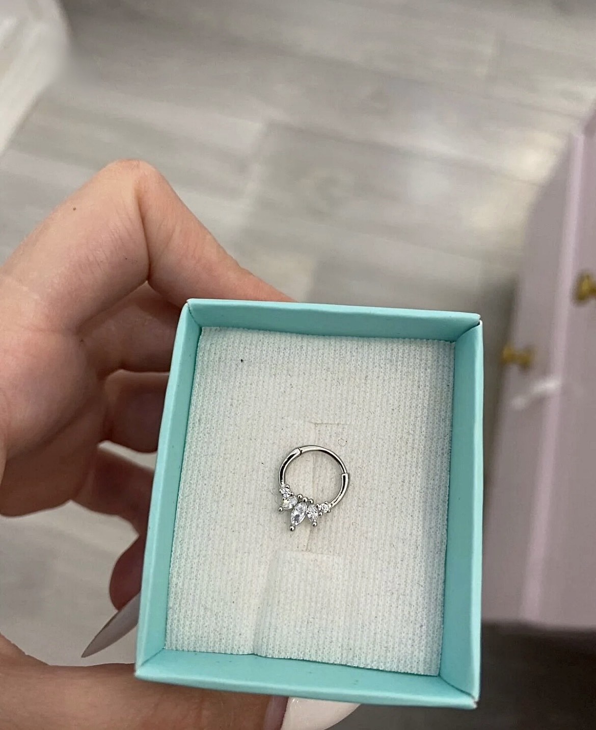 Baget Taşlı Yaprak Model Halka Piercing | Silver
