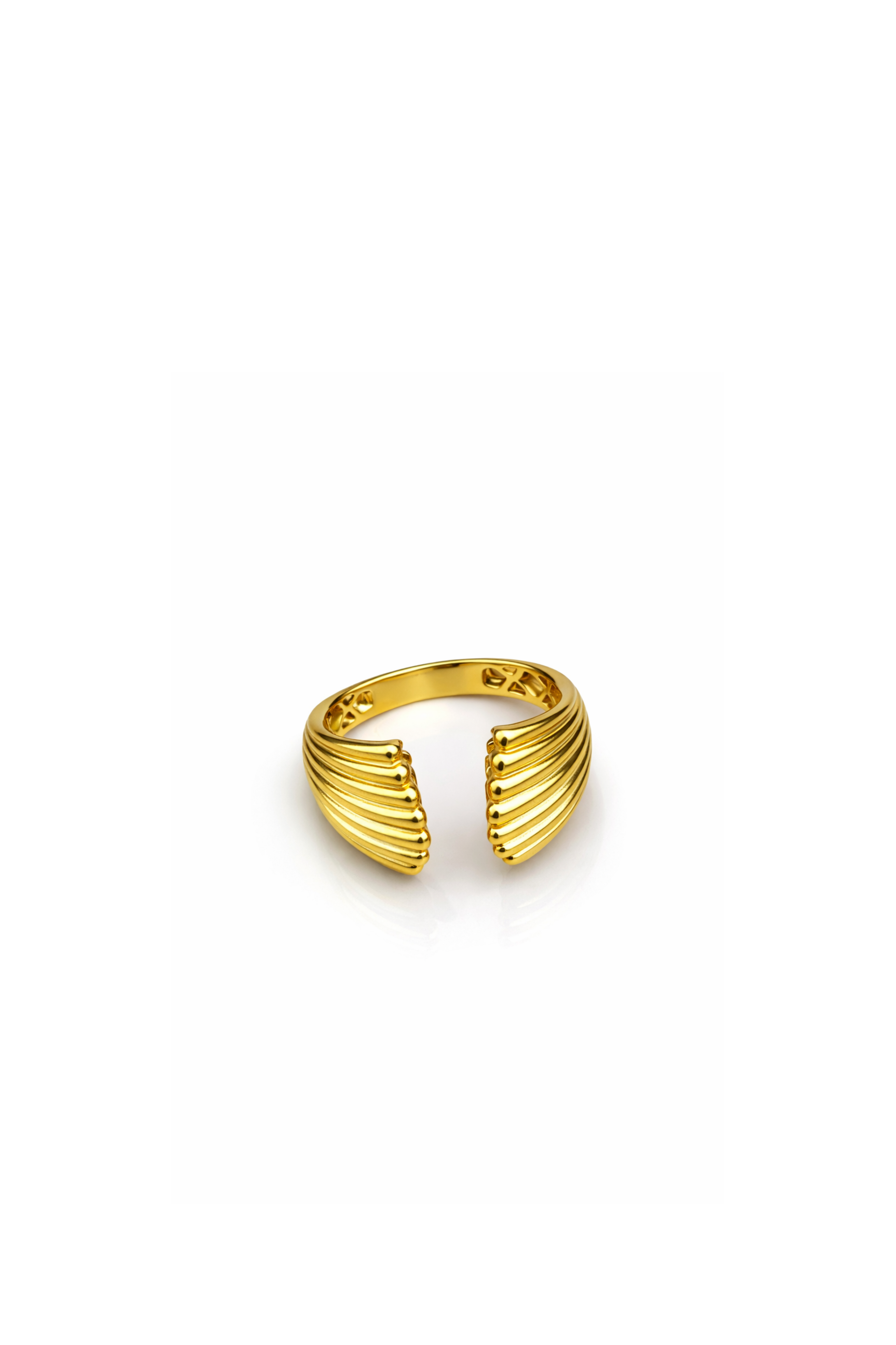 Midye Dokulu Taşsız Gold Yüzük | El İşciliği