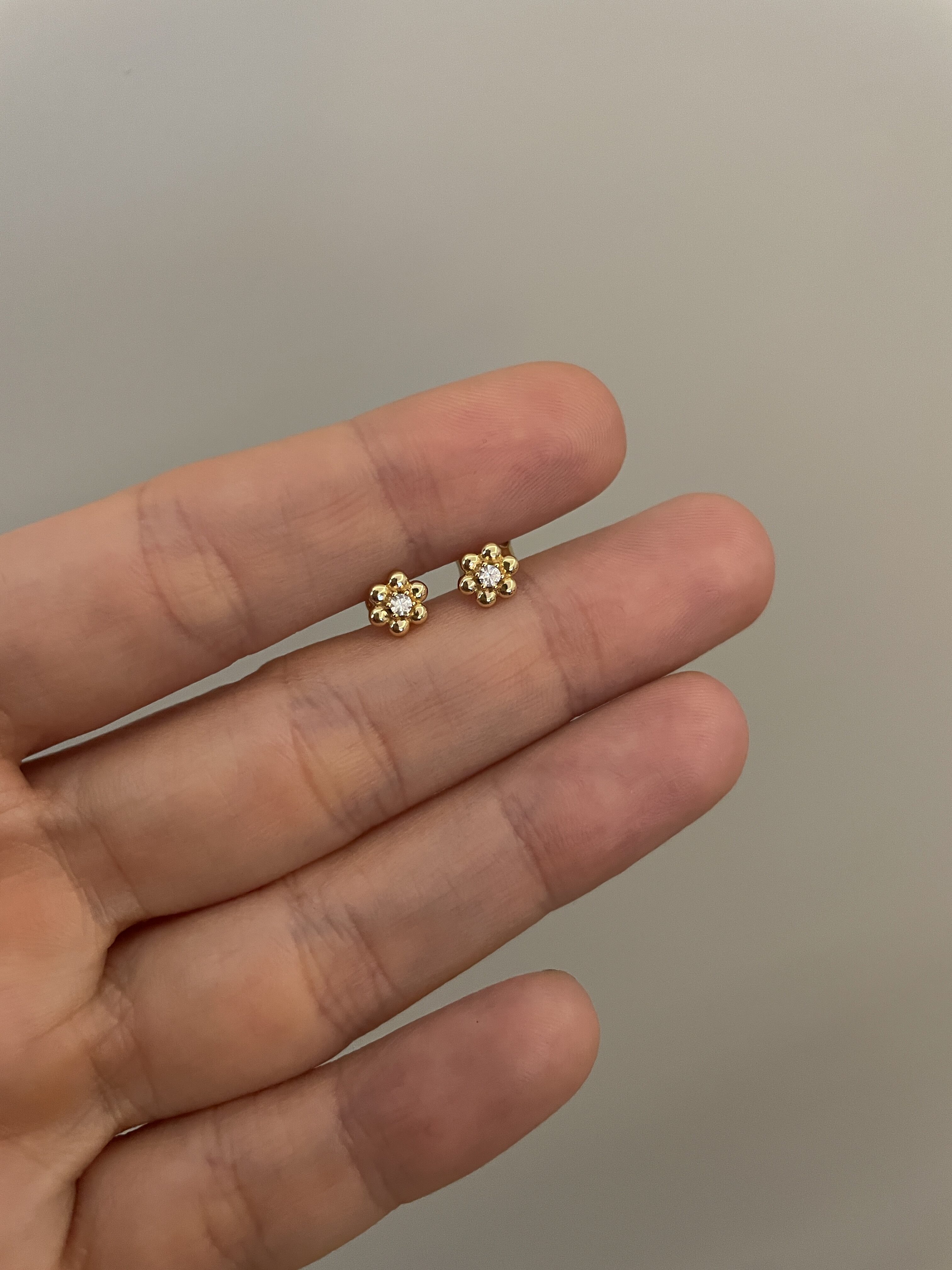 Mini Gold Çiçek Vidalı Küpe 14 Ayar Altın Kaplama