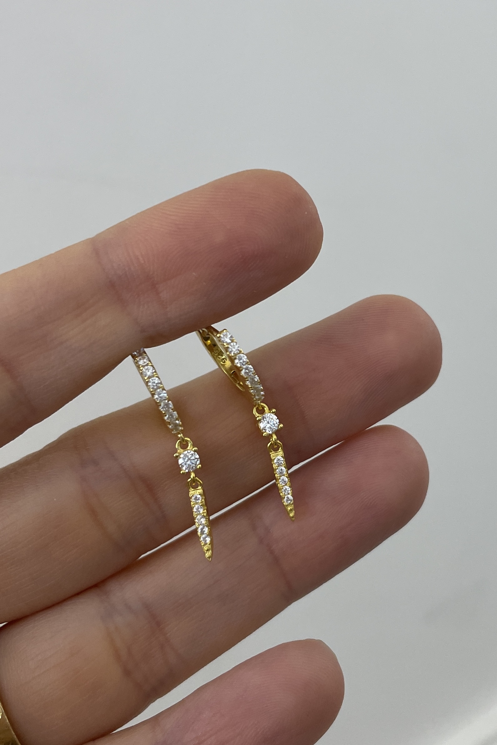 Işıltılı Taşlı Çubuk Sallantılı Gold Halka Küpe | New Collection