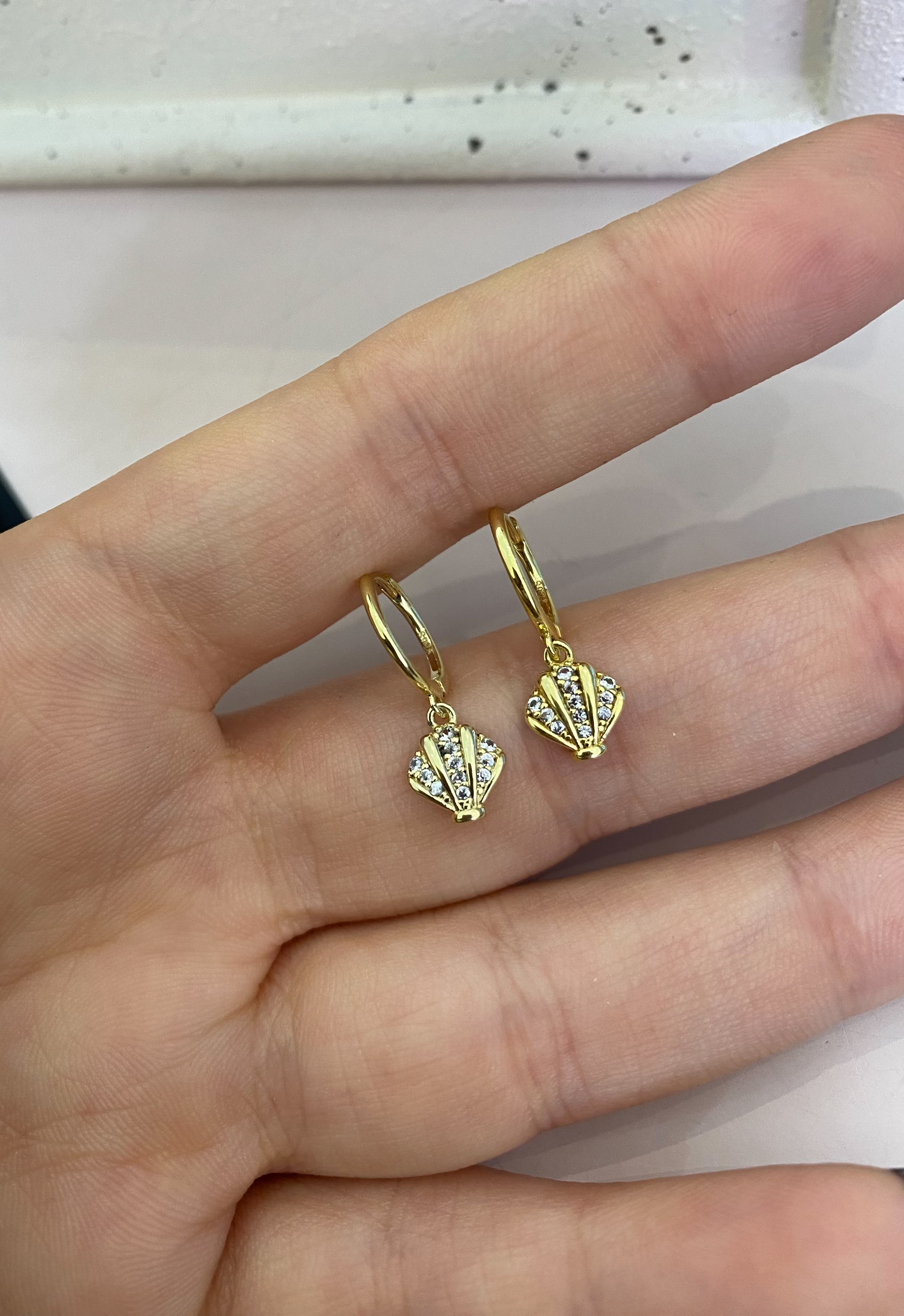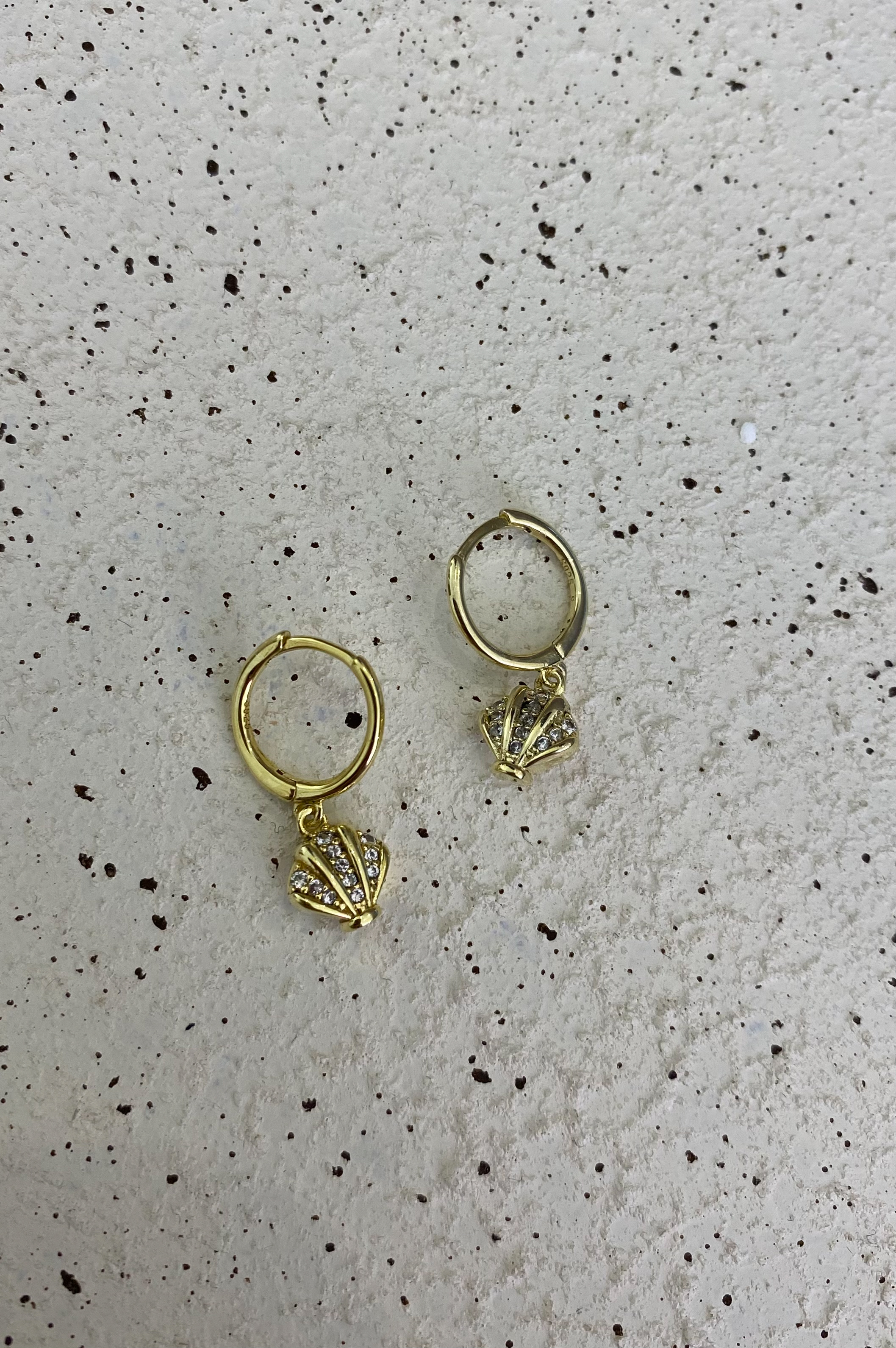 Mini Taşlı Midye Küpe | Gold