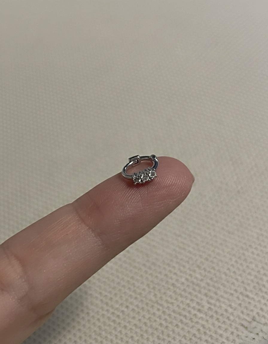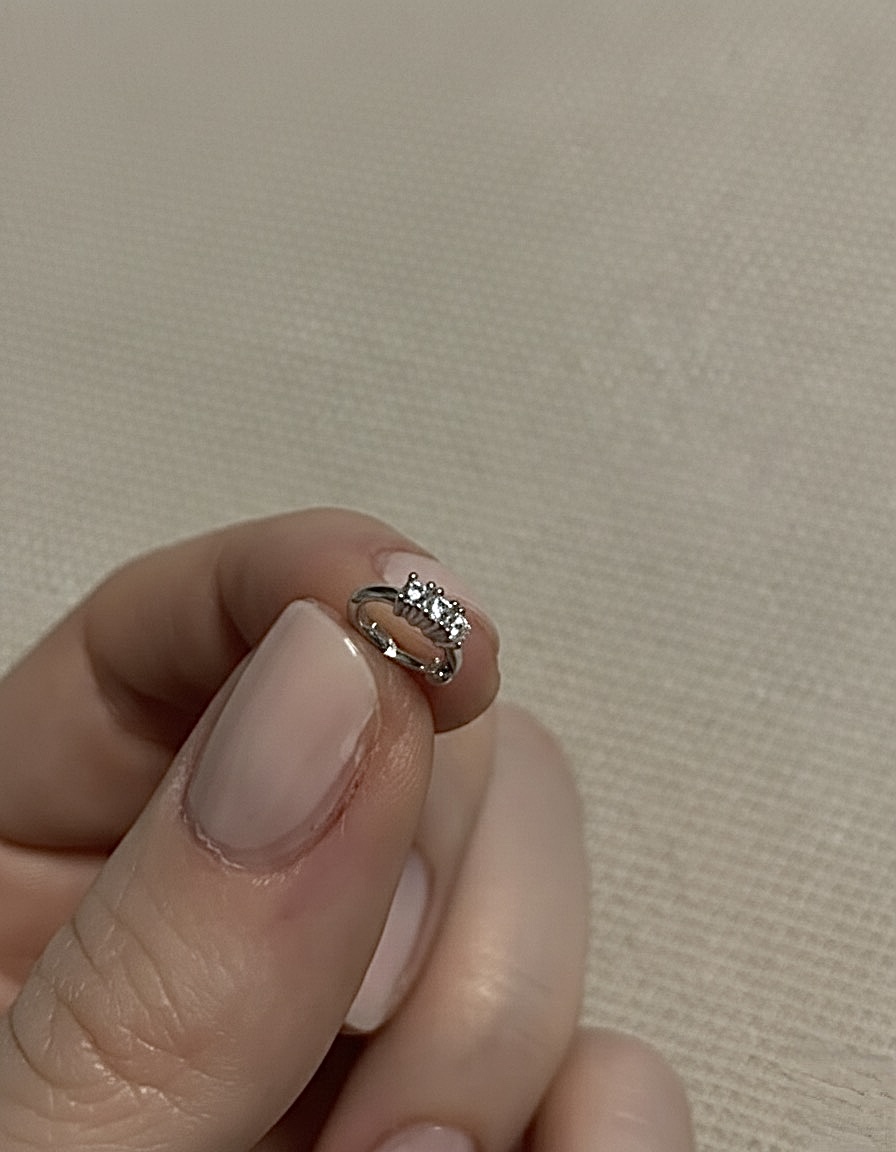 Mini Üç Taşlı Halka Piercing | Silver