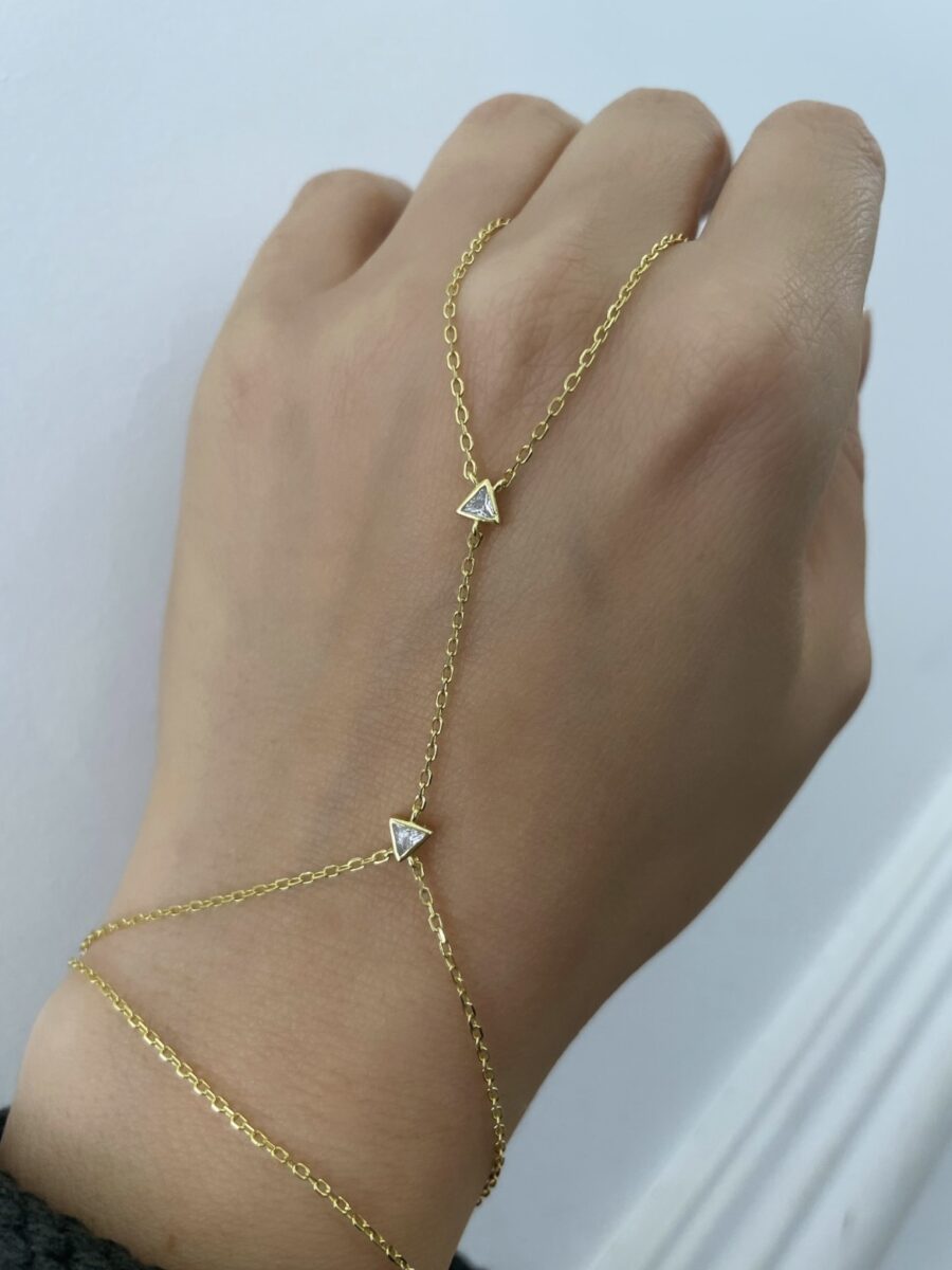 Mini Üçgen Taş Detaylı Gold Şahmeran
