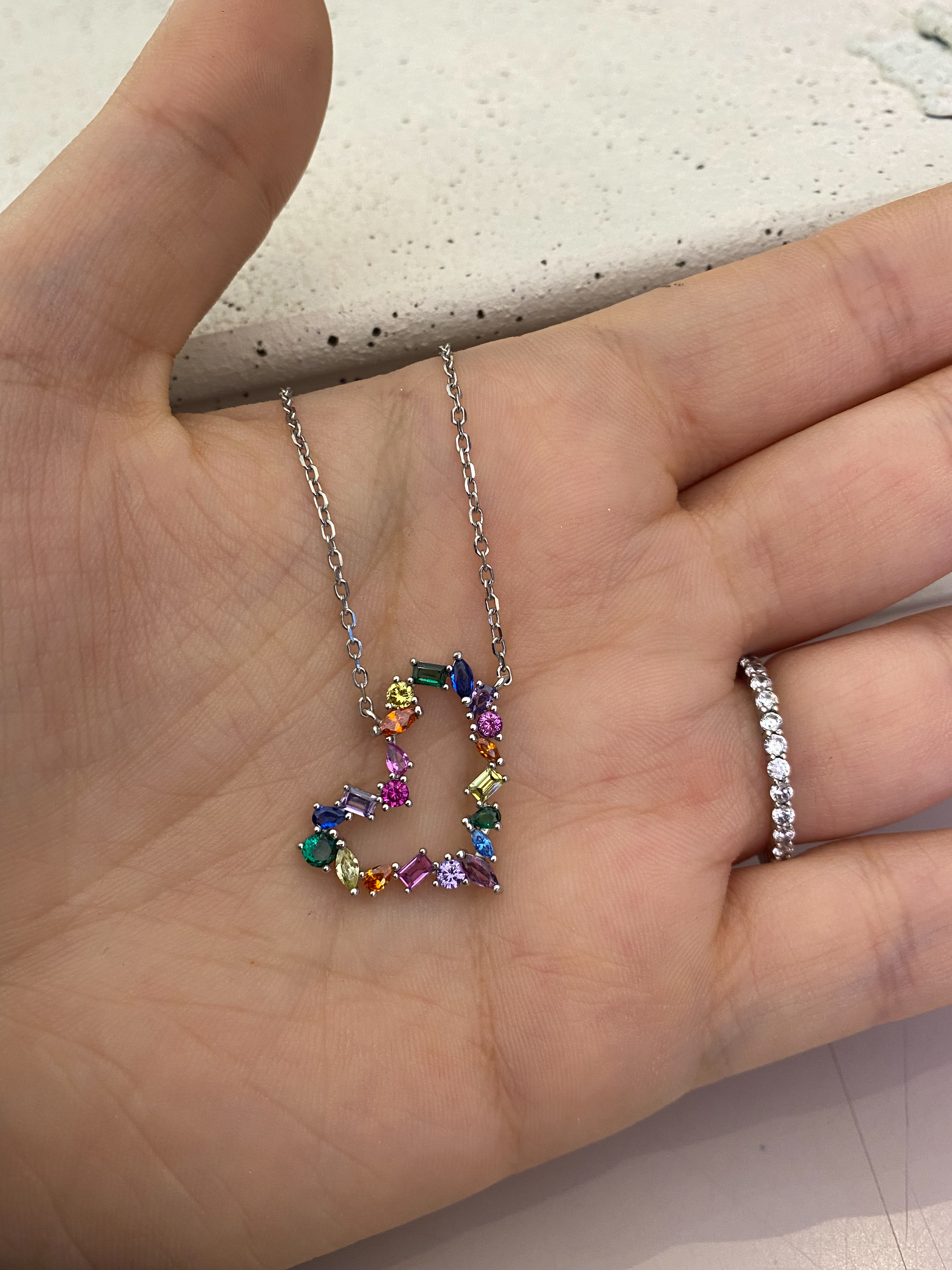 Mix Taşlı Kalp Kolye Rainbow | Silver