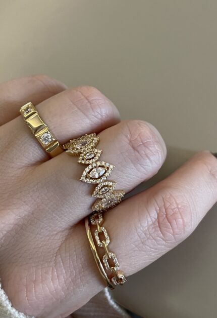 Işıltılı Badem Kesim Taşlı Taç Model Yüzük