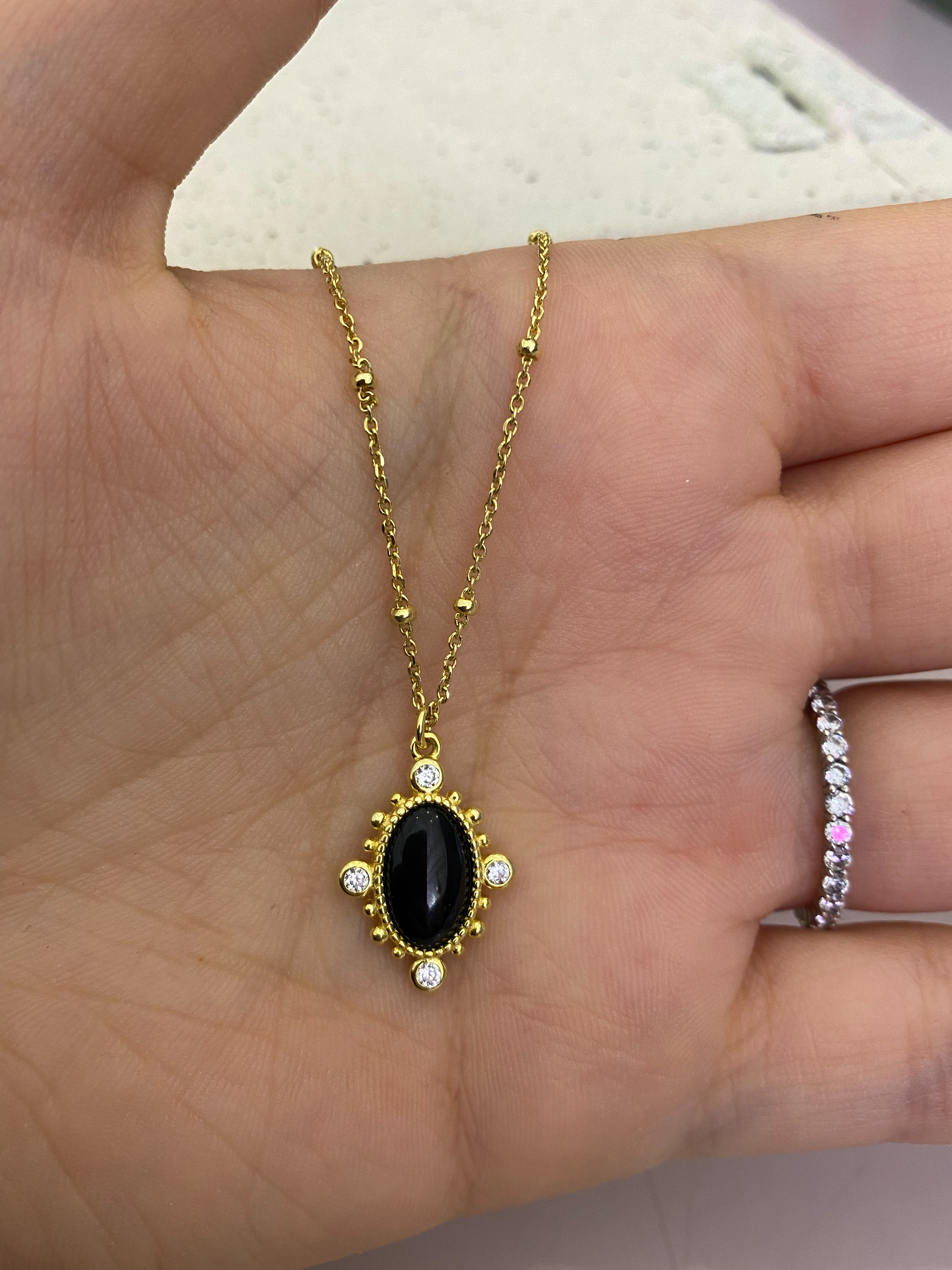 Oniks Taşı Çerçeveli Kolye | Gold
