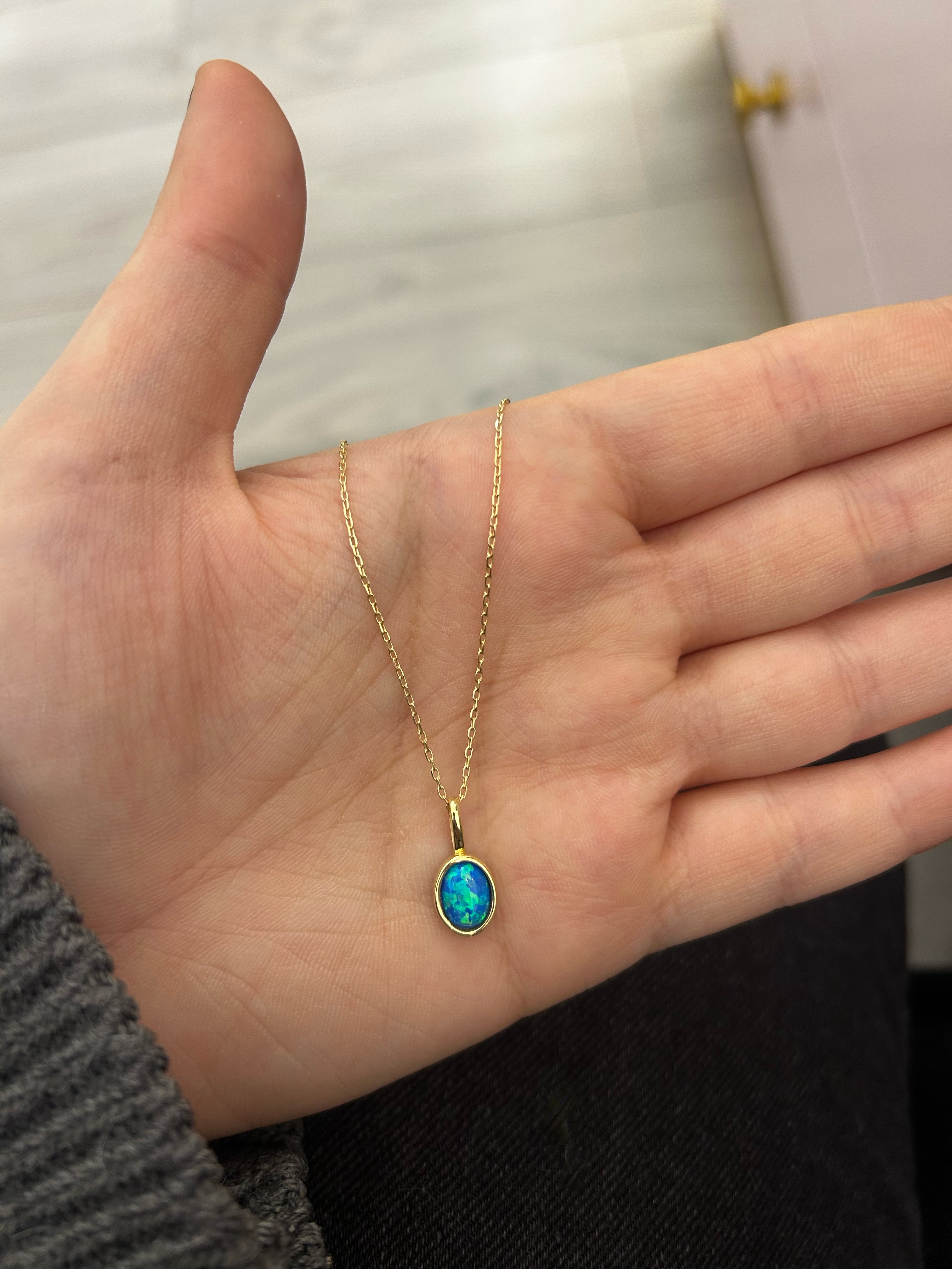 Opal Taşlı Kolye | Gold