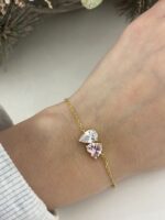 Pembe Kalp Taşlı Ve Damla Taşlı Bileklik