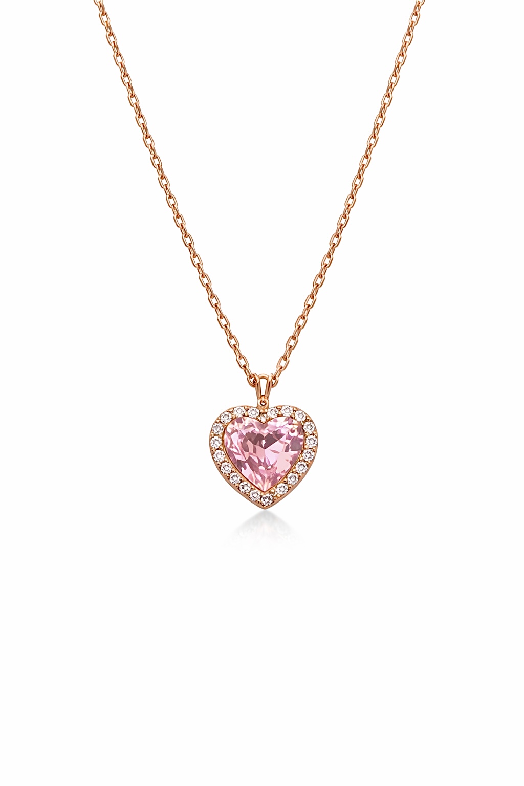 Siminkari Özel Tasarım Pembe Taşlı Kalp Kolye | Rose