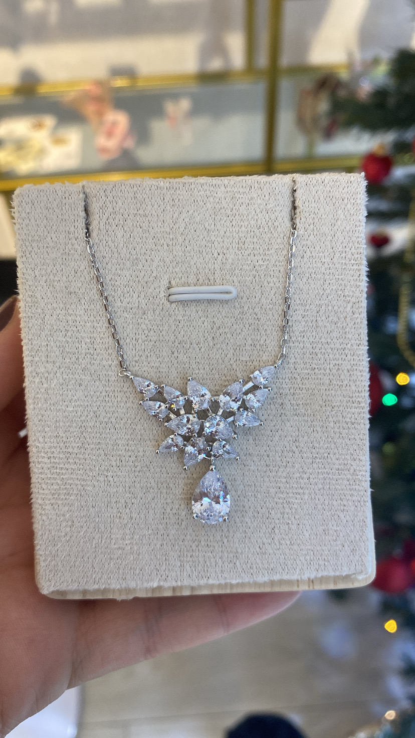 Pırlanta Montür Yaprak Şeklinde Tasarım Kolye | Silver