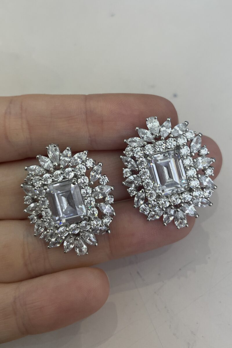 Prenses Kesim Baget Çiçek Motifli Pırlanta Montür Tasarım Küpe