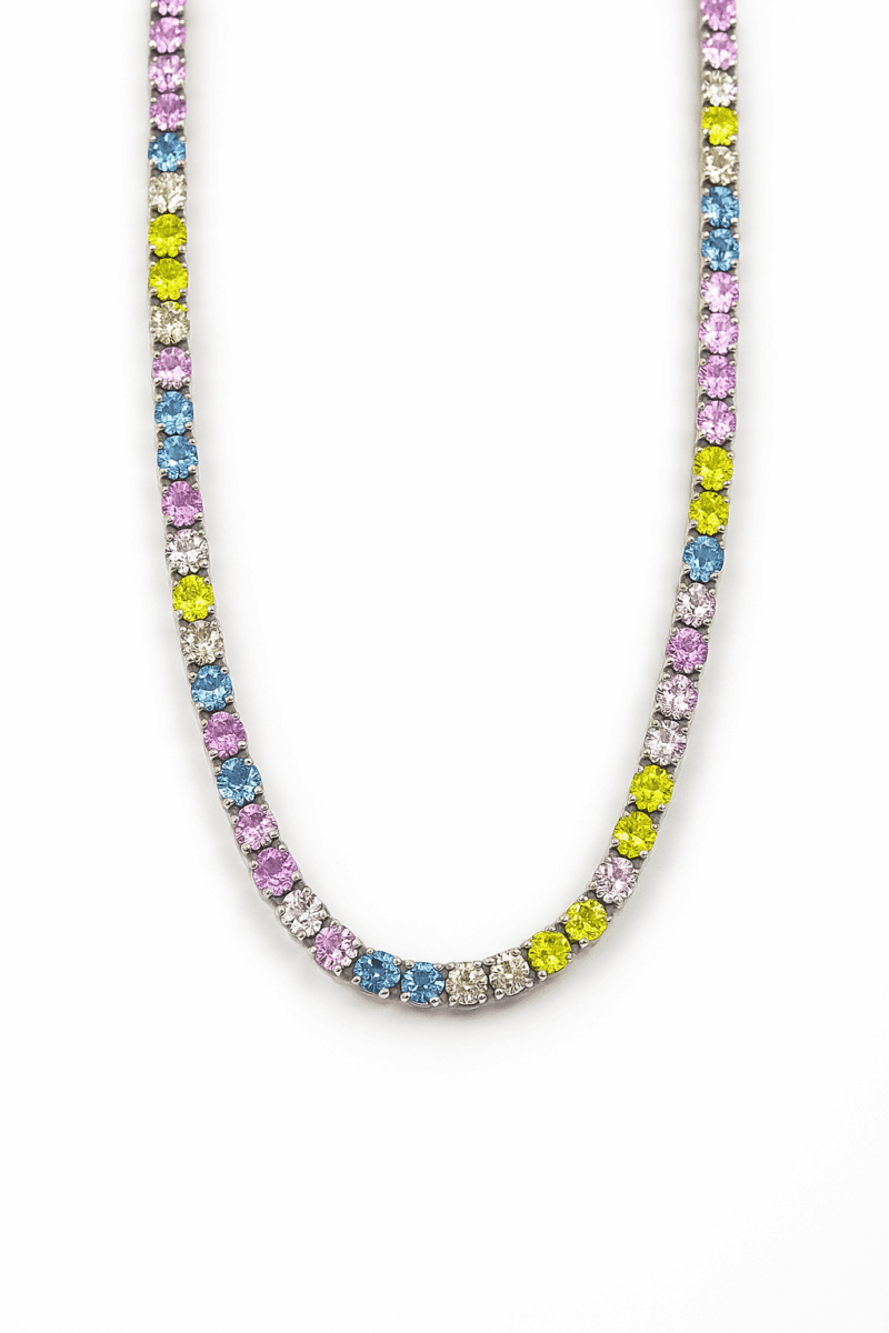 Renkli Mix Pırlanta Montür Taşlı 4 mm Su Yolu Kolye 45 cm