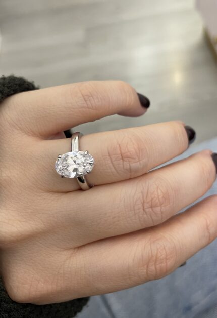Oval Kesim Tek Taş Yüzük Silver 2 Karat