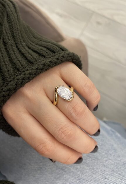 Oval Kesim Sarmak Tek Taş Yüzük Silver 2 Karat
