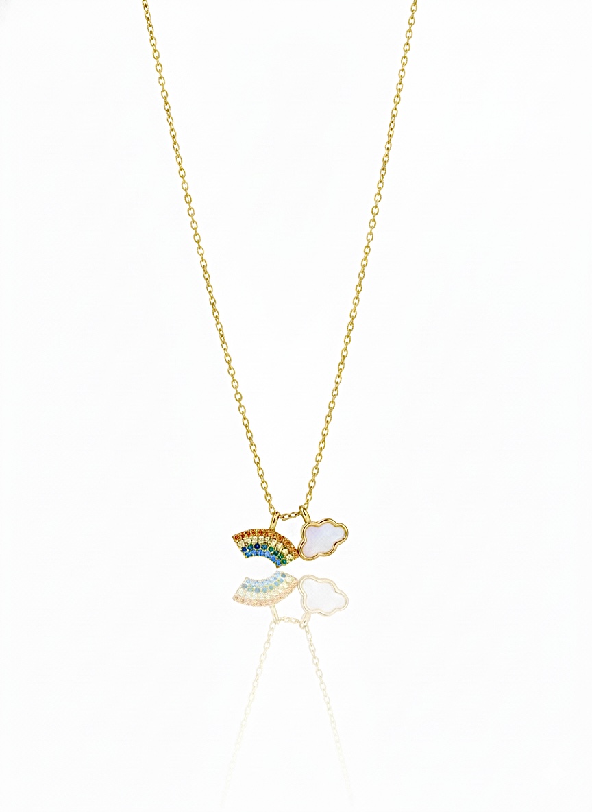 Sedefli Bulut ve Gökkuşağı Kolye | Gold