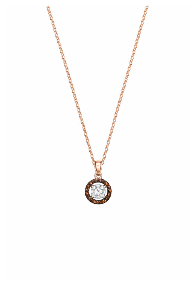 Siyah Taşlı Yuvarlak Model Tek Taş Kolye | Rose Gold