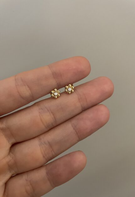 6 mm Tek Taş Gold Küpe Vidalı