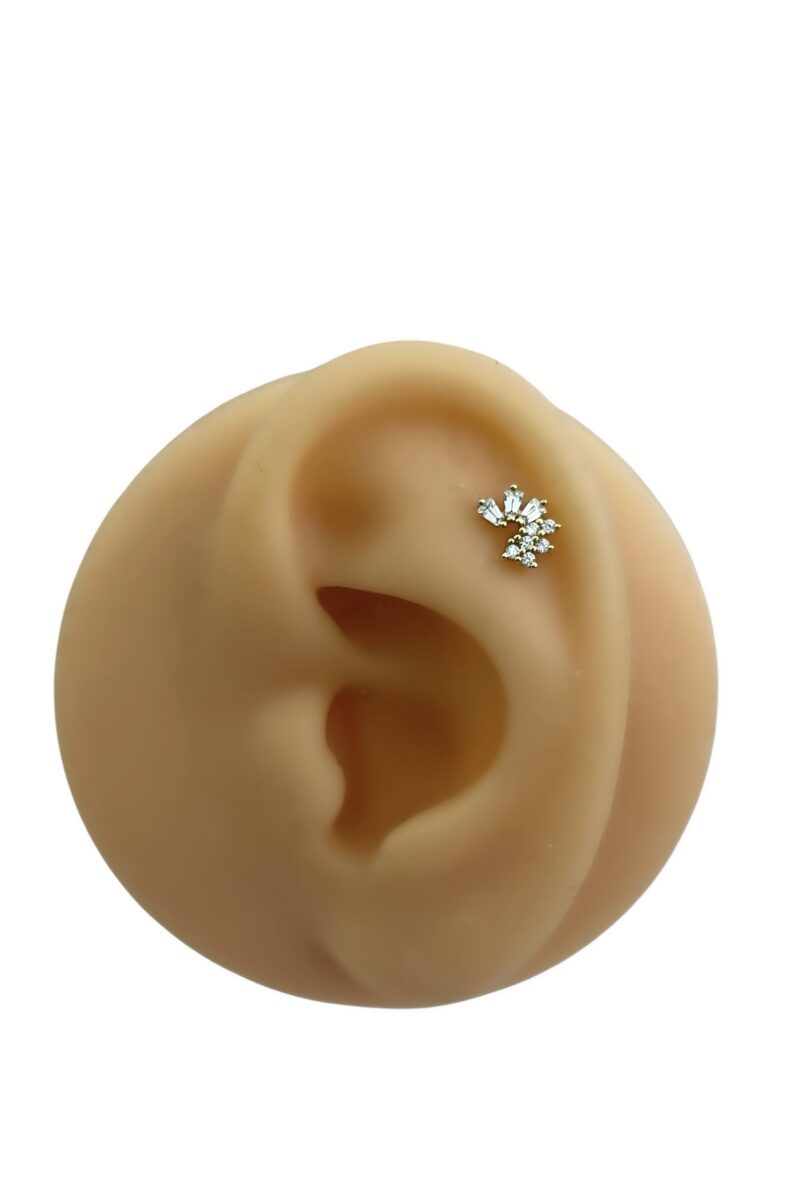 Yeşil Beyaz Taşlı Taç Gold Piercing
