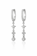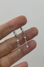 Taşlı Işıltılı Mini Kutup Yıldızı Motifli Sallantılı Silver Halka Küpe