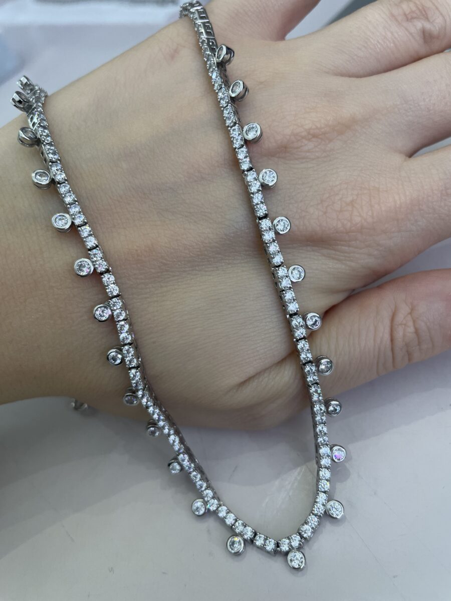 Taşlı Pırlanta Montürü Tennis Kolye 45 cm