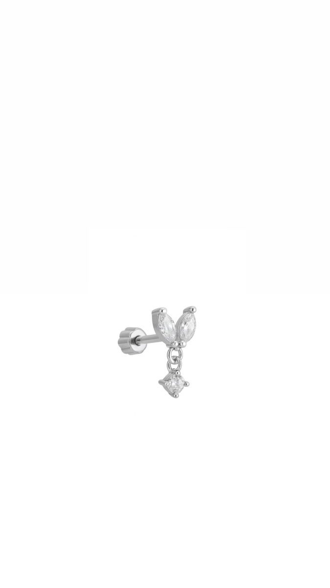 Mini Lotus Taşlı Sallantılı Piercing / Silver