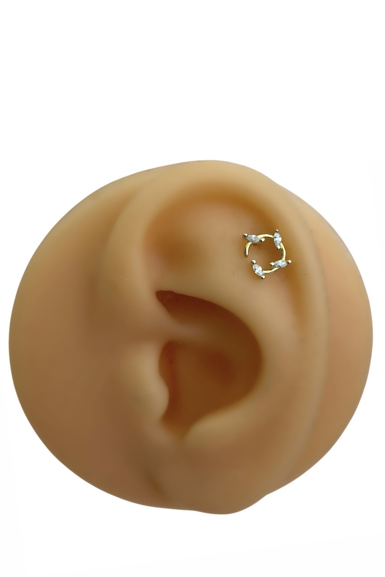 Yeşil Beyaz Taşlı Taç Gold Piercing