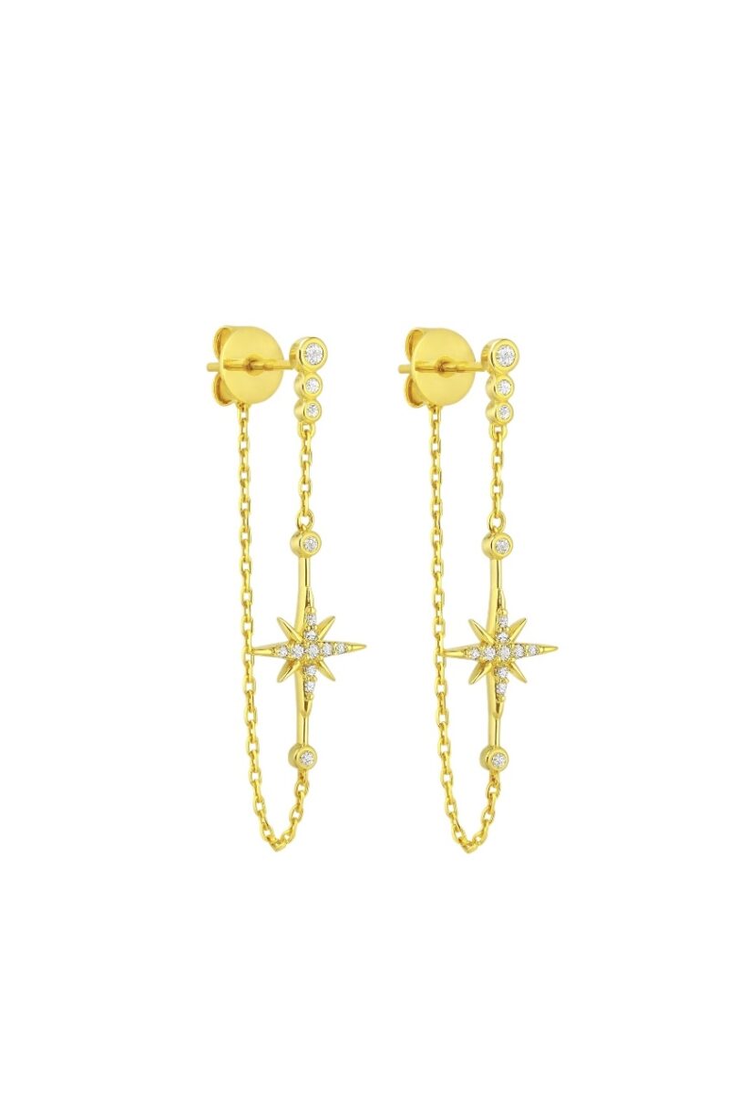 Taşlı Zincir Kutup Küpe Gold