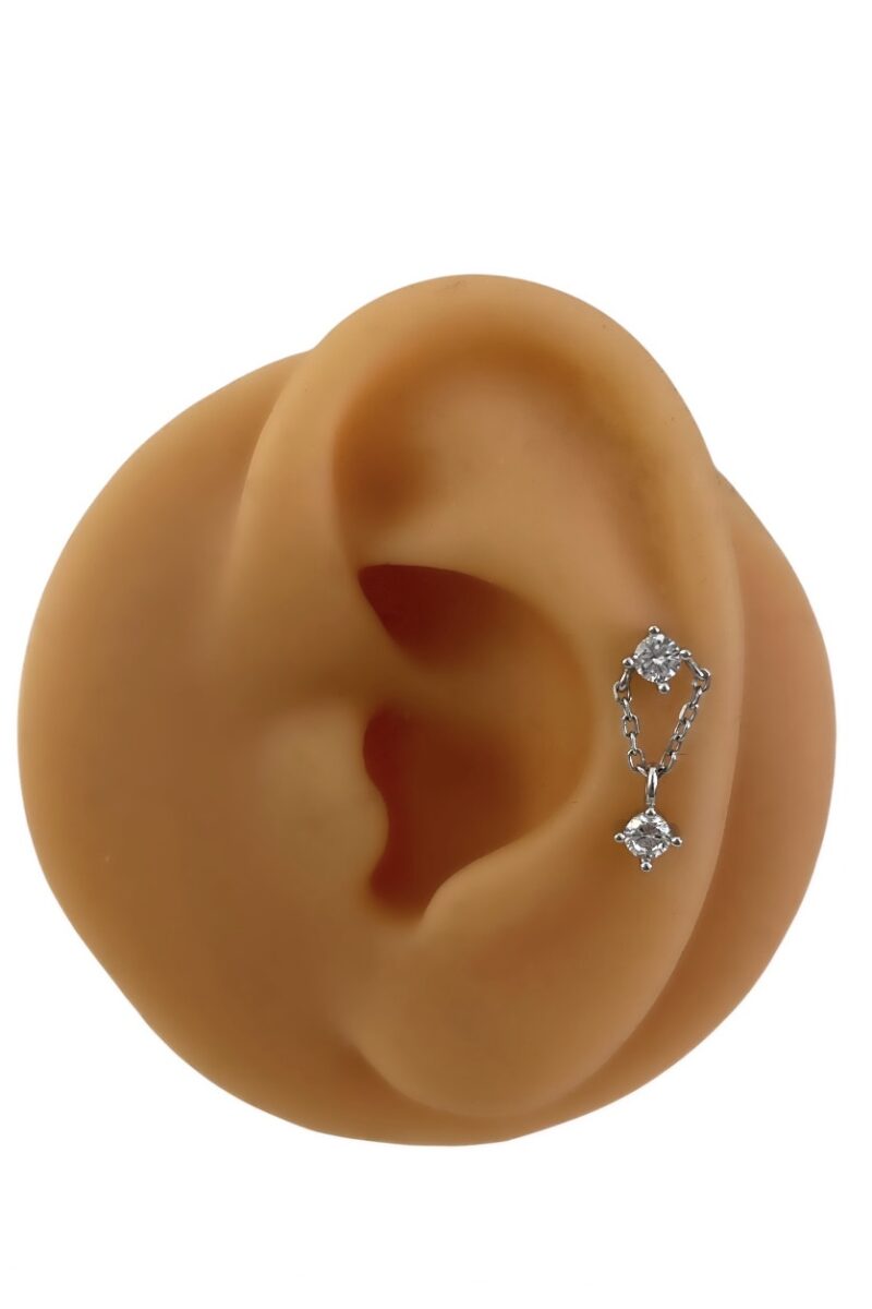 Taşlı Zincir Sallantılı Piercing / Silver