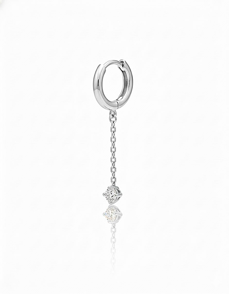 Tek Taş Zincir Sallantılı Silver Halka Küpe
