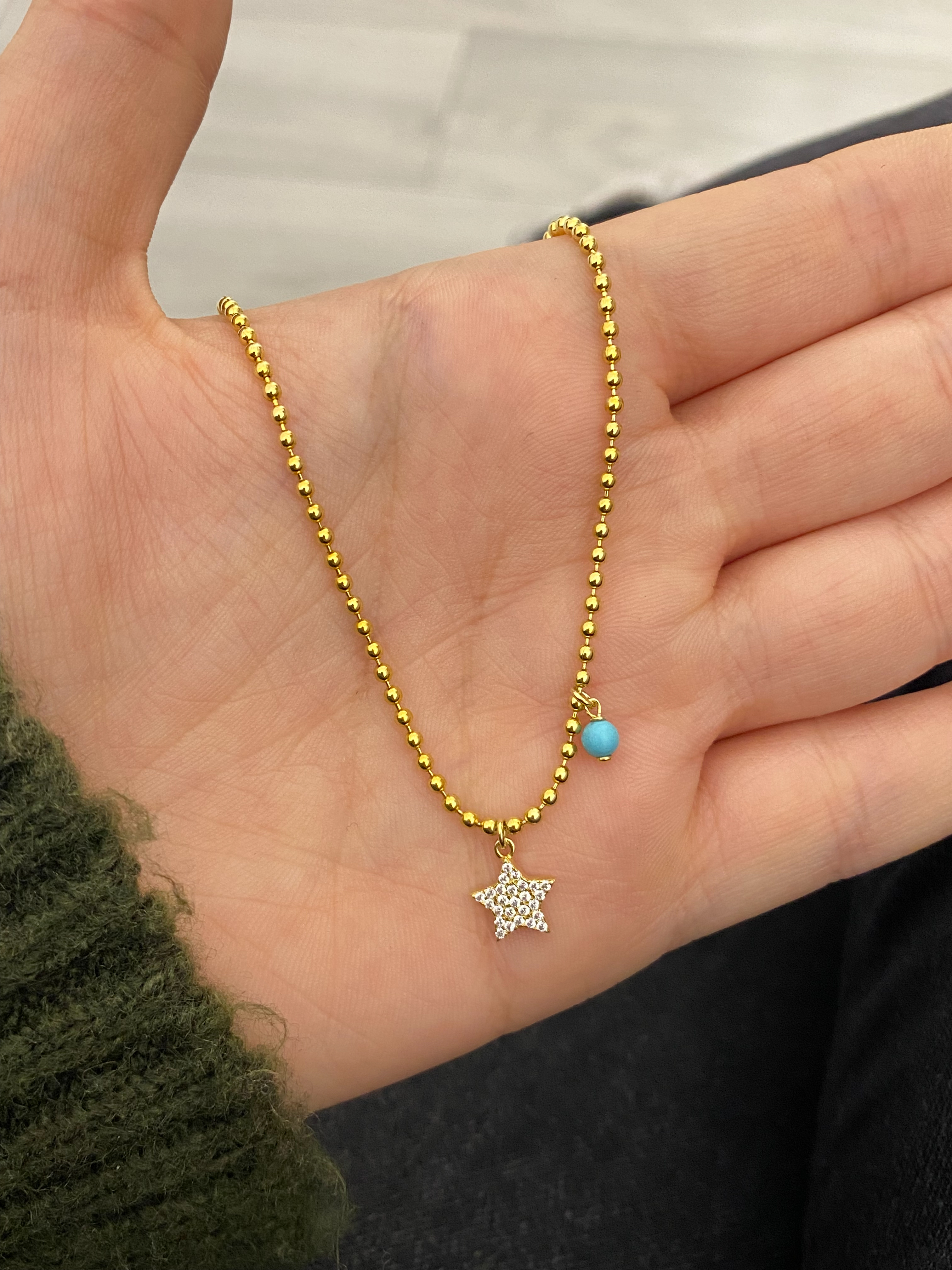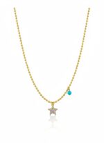 Topçuk Zincirli Yıldız Ve Firuze Taşlı Gold Kolye
