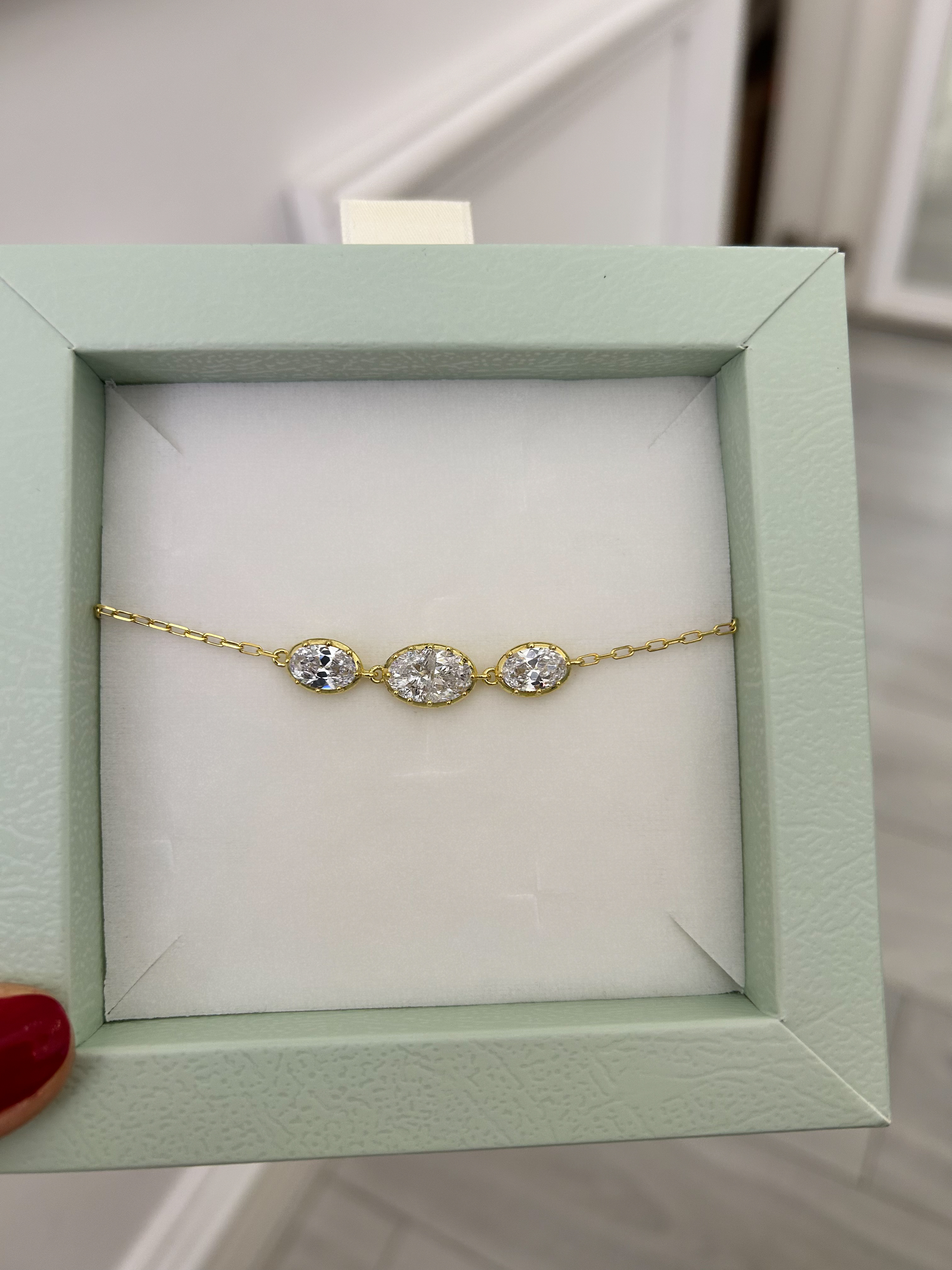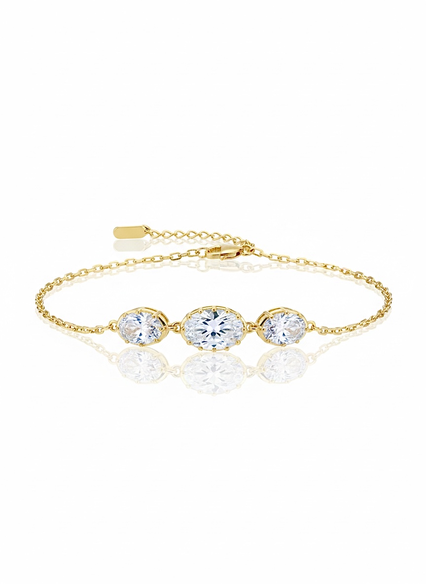 Üç Taşlı Pırlanta Montür Bileklik | Gold