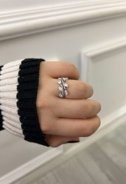 Yaprak Kesim Pırlanta Montür Yüzük | Silver
