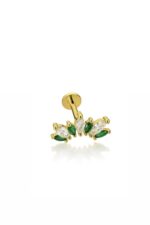Yeşil Beyaz Taşlı Taç Piercing | Gold