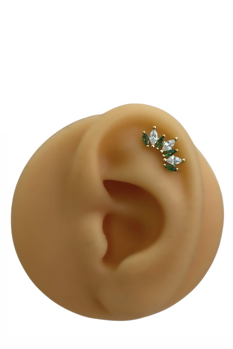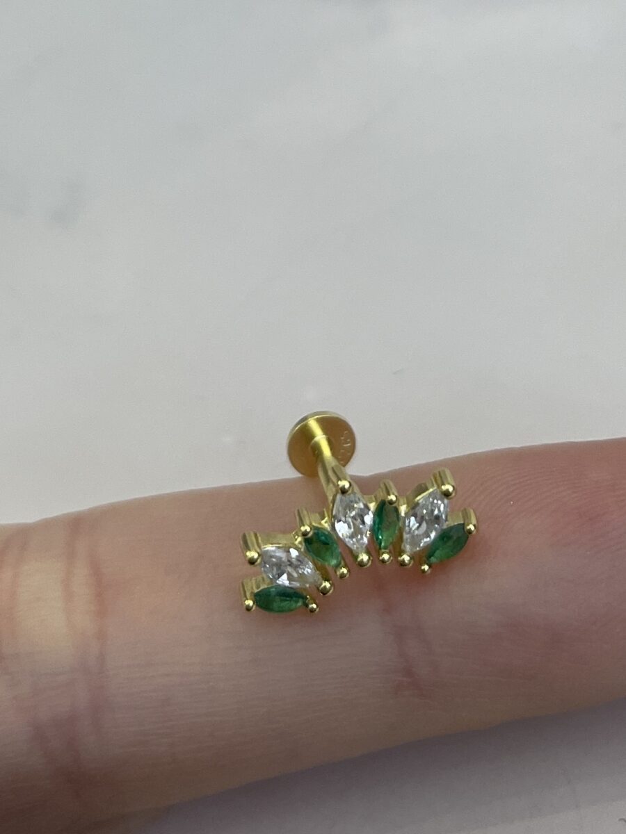 Yeşil Beyaz Taşlı Taç Gold Piercing