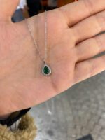 Yeşil Taşlı Silver Damla Kolye