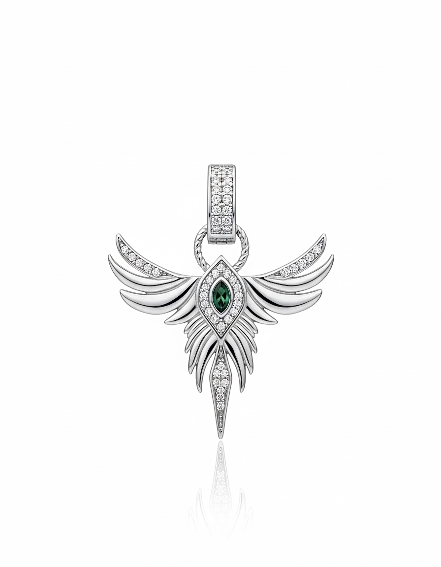Yeşil Taşlı Anka Kolye Ucu | Silver