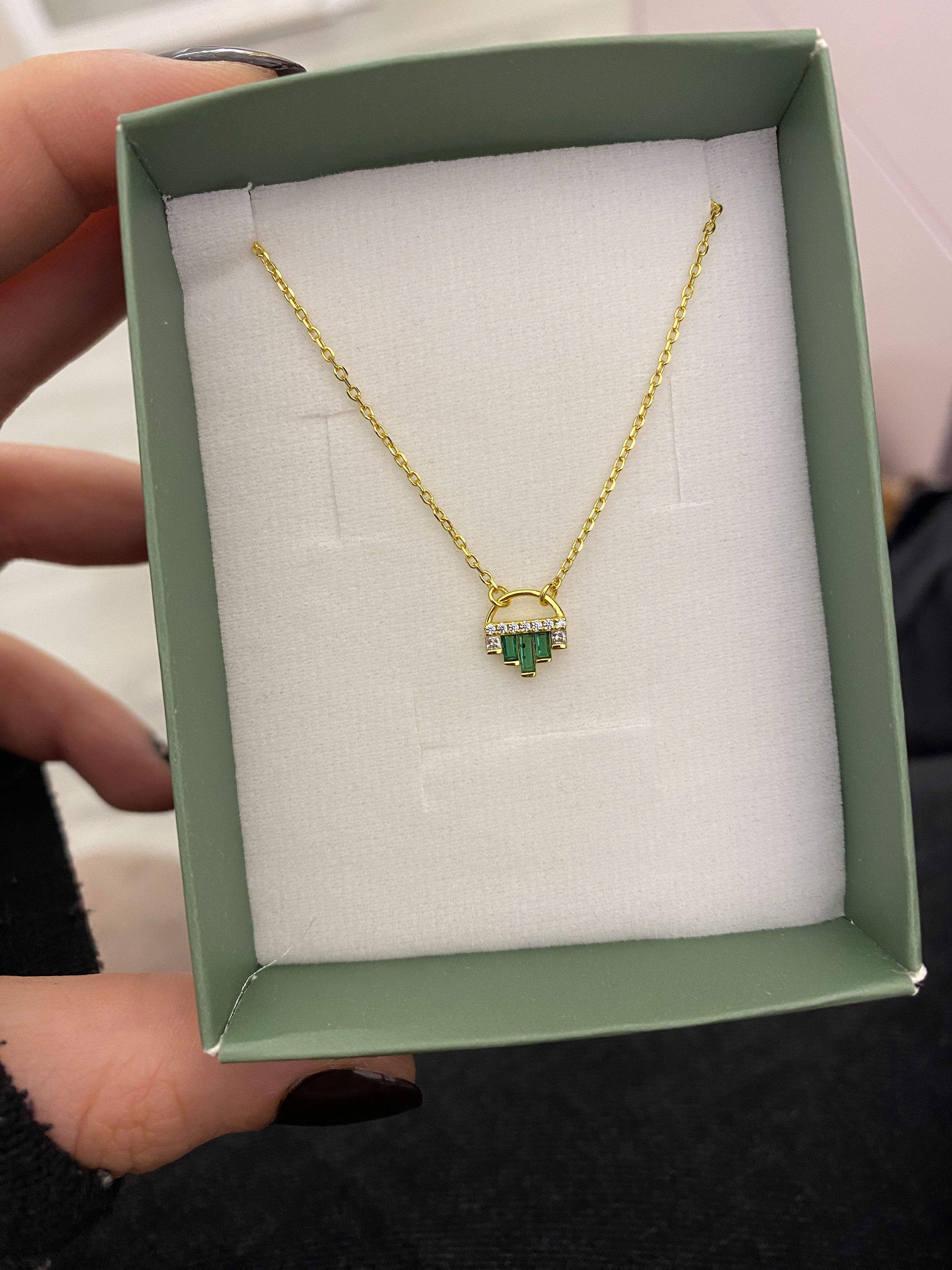 Yeşil Taşlı Kolye | Gold