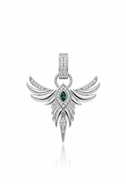 Yeşil Taşlı Anka Kolye Ucu | Silver