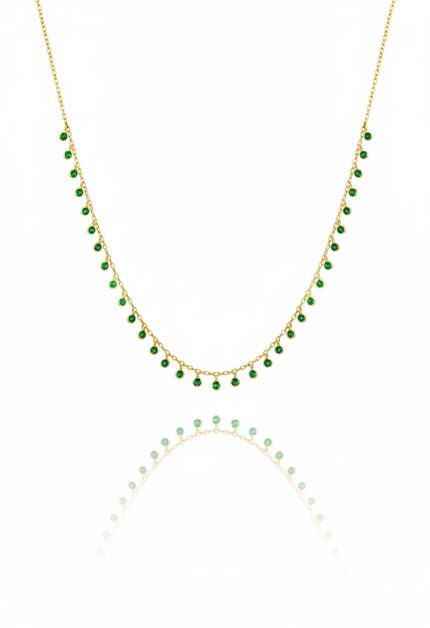 Mini Sıralı Yeşil Taşlı Kolye | Gold