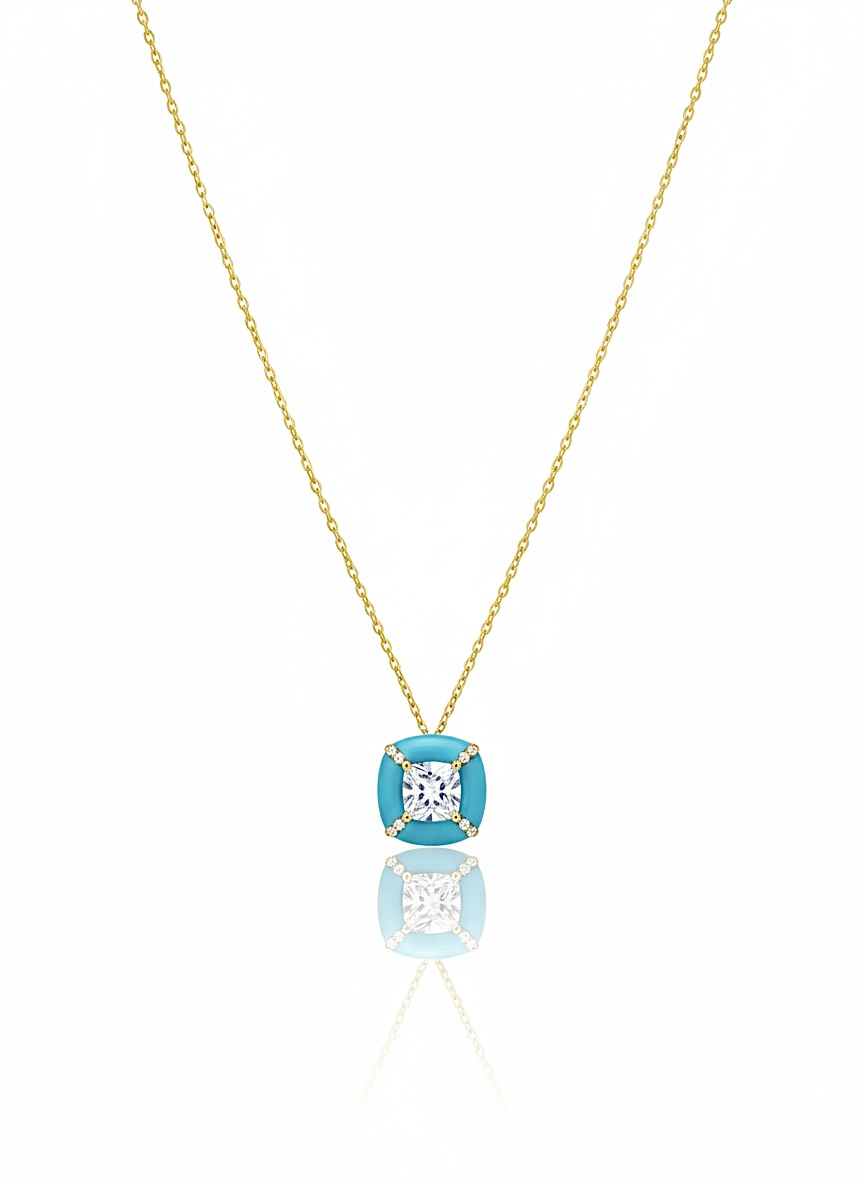Büyük Firuze Taşlı Oval Kolye | Gold