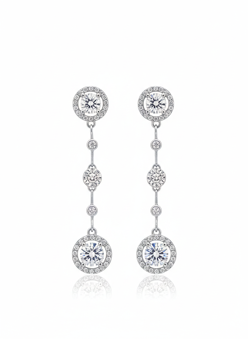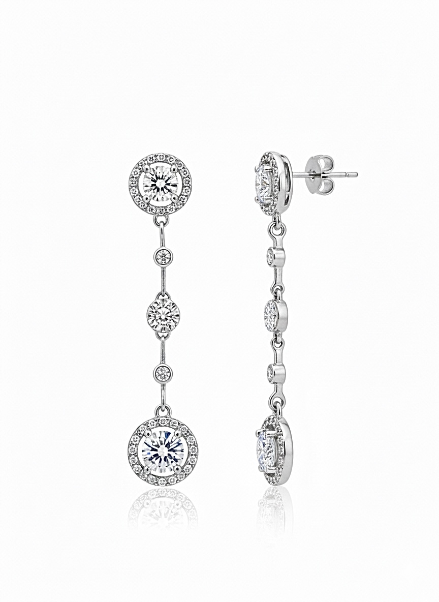 Yuvarlak Taşlı Pırlanta Model Sallantılı Vidalı Küpe | Silver