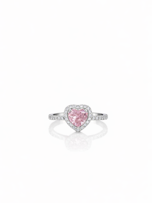 Pembe Taşlı Kalp Yüzük Siminkari Özel Tasarım | Rose